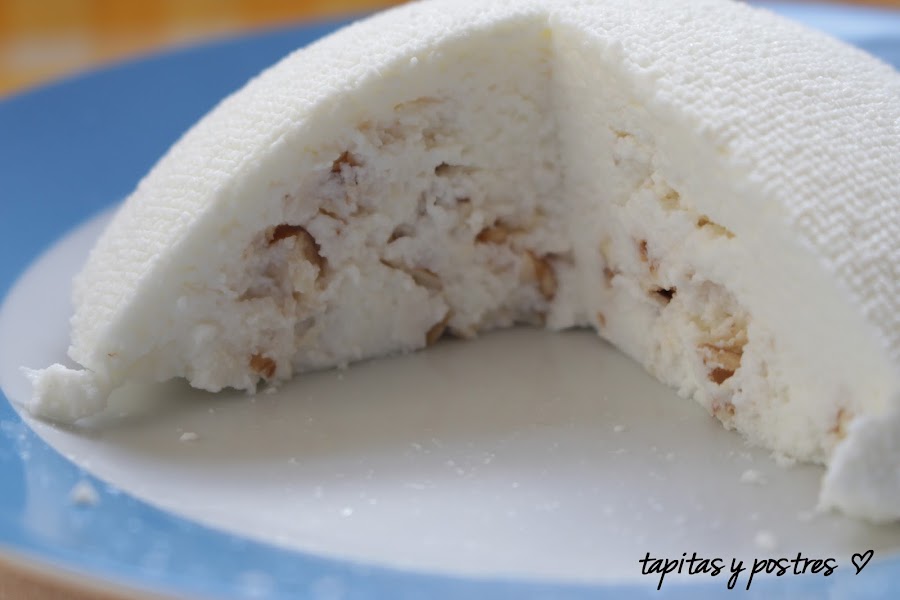Y este es el queso hecho sin el molde Lekue, no queda tan mono, pero no está tan mal, ¿verdad? Con sus nueces... ¡muy rico!