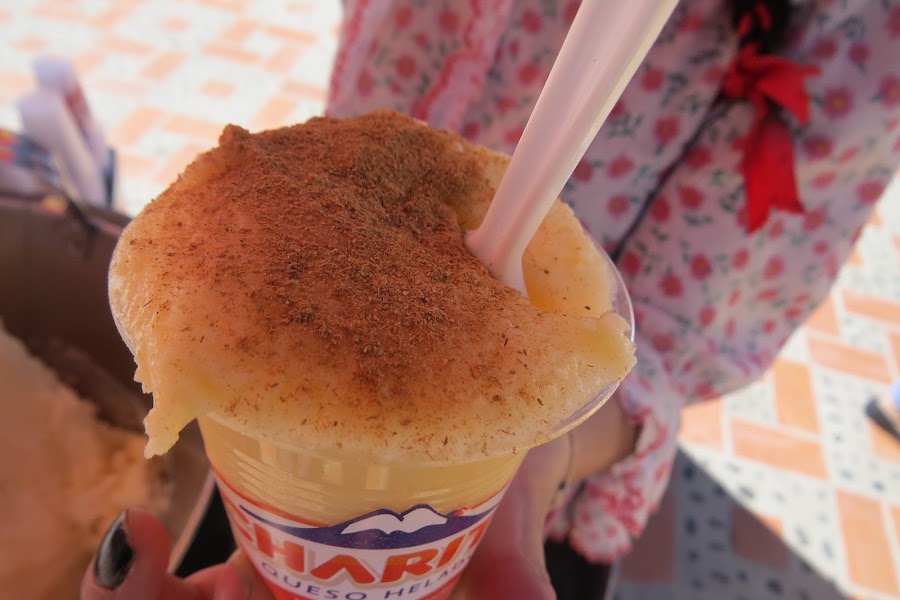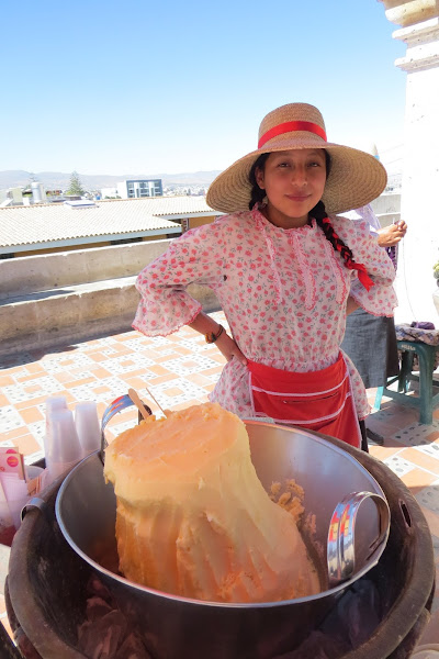 En uno de los paseos obligados nos encontramos con esta amable señorita que vendía el famoso postre que es el orgullo de los arequipeños: el queso helado.