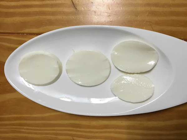 Una vez pelados hacemos unas láminas y las colocamos encima del queso.