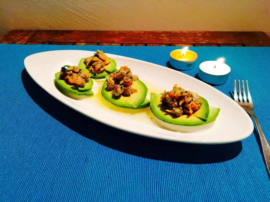(Käse und Avocatobirnen mit Herzmuscheln)