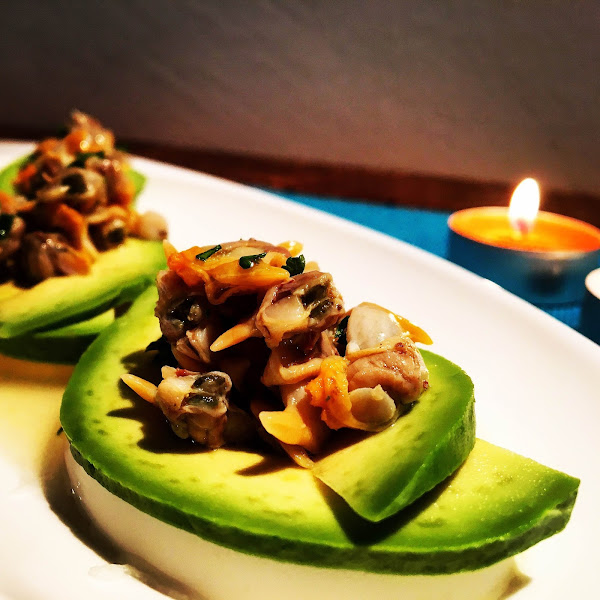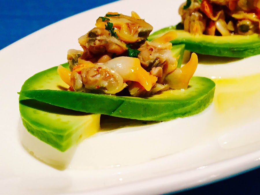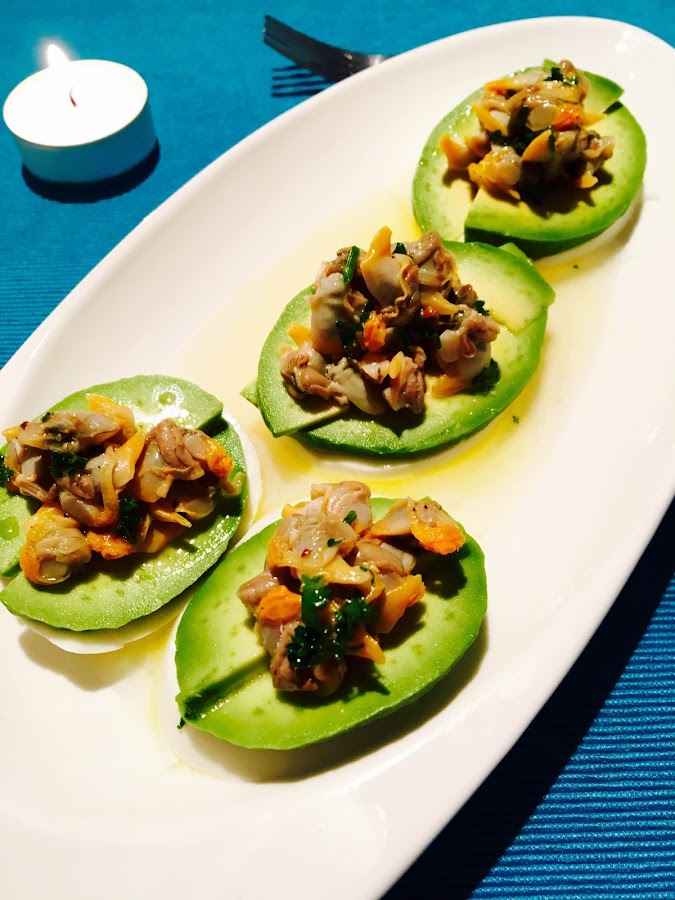(Cheese and avocados with cockles)