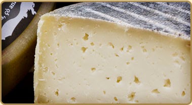 Corteza natural y pasta semi dura. Pasta tocando a la corteza más amarillenta con pequeños agujeritos en el interior. Sabor suave