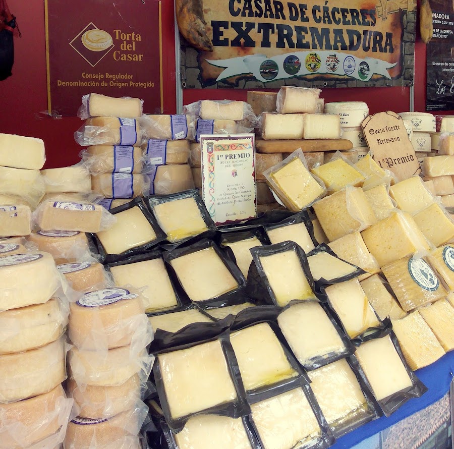 Hoy me encontré con esta exposición de quesos de Extremadura, que se ven con una pinta que no tuve menos que hacer una foto para compartirlo con mis amigos del blog