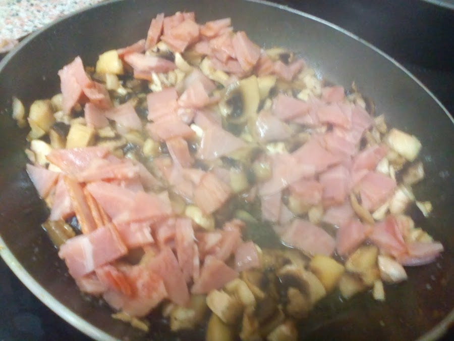 El beicon y el champi pasados previamente ligeramente...