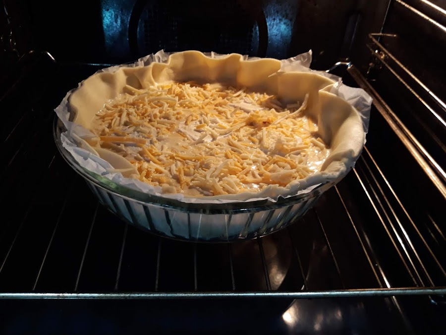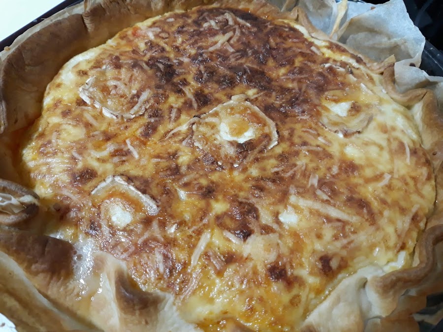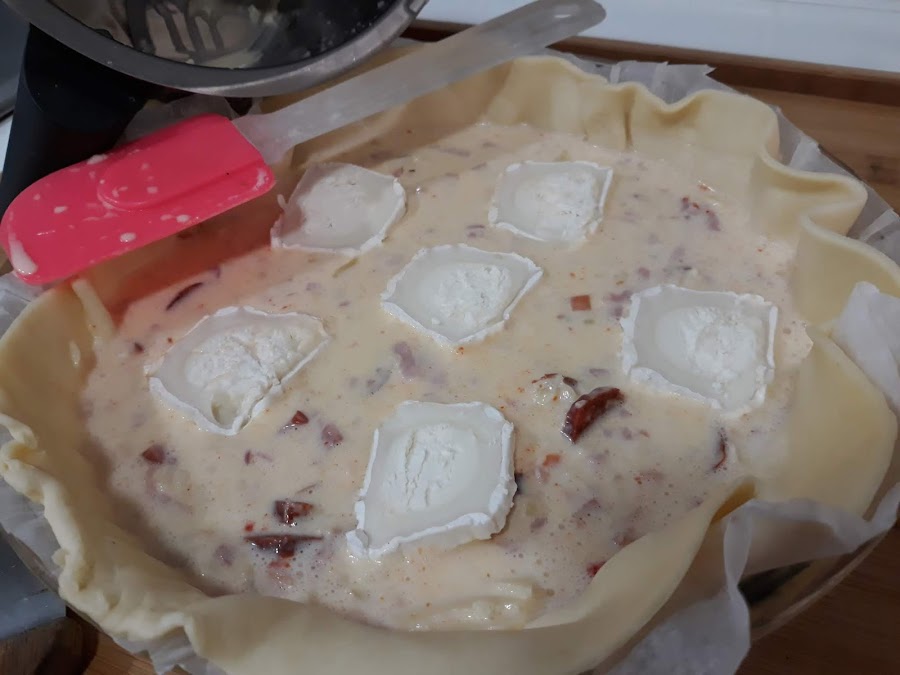 Una masa quebrada, apareció por mi nevera, miré la fecha de caducidad y ¡ufff! salvada por la campana. Y para no hacerla siempre igual, esta vez, le añadí láminas de queso de cabra..