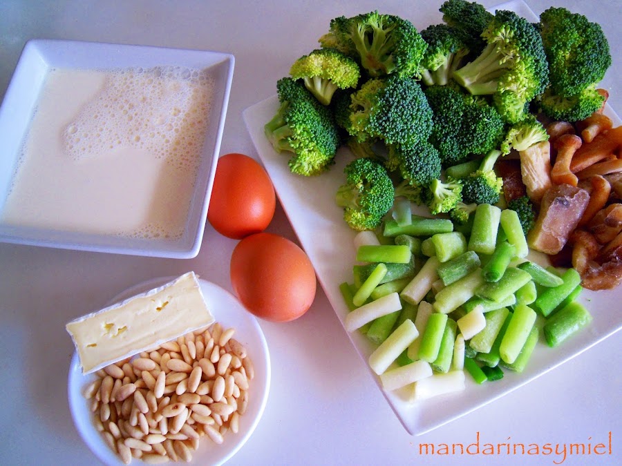 Este mes las propuestas han sido como fruta las nectarinas y como verdura los ajos tiernos; Las dos me gustan, pero me he decidido por hacer una receta salada con los ajos tiernos que les gustan a todos los de mi familia.