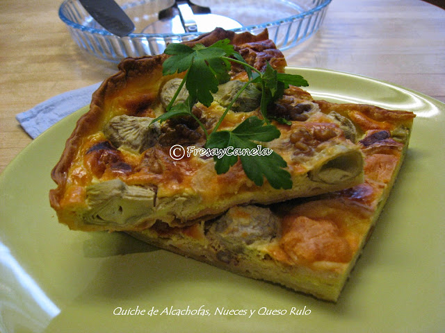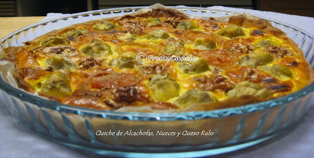 Elaboración:Ponemos a escurrir las alcachofas en un colador como 1/2 hora antes de empezar a preparar nuestra quiche. Este paso es muy importante, ya que si sueltan agua humedecerian la masa y el resultado no sería bueno.
