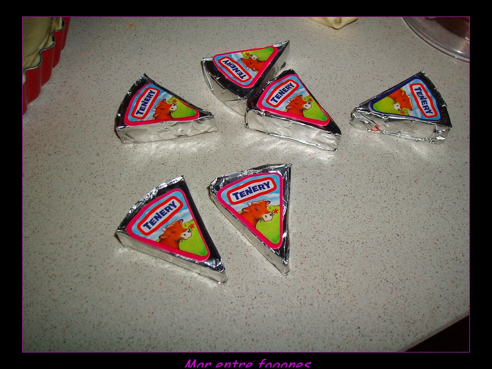 Batimos los huevos, las porciones de quesito y la leche con un pellizco de sal.