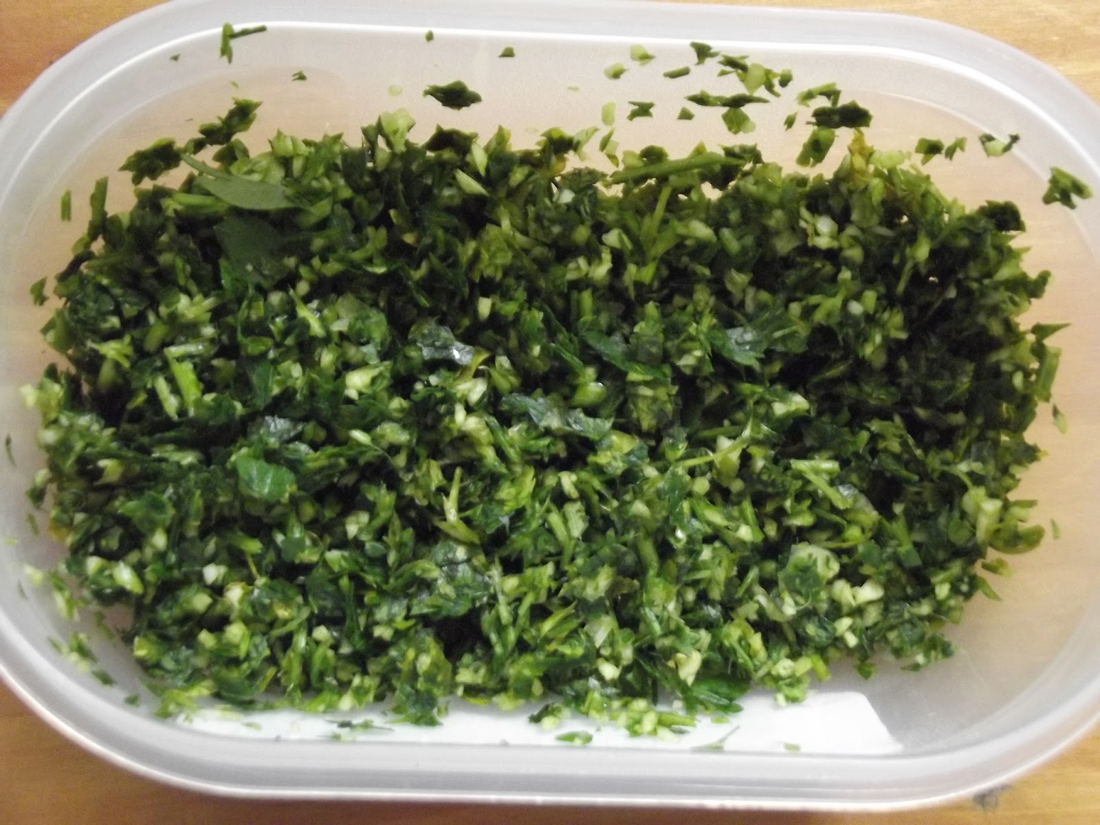 Yo suelo tener un táper perejil y ajo picado y en esta ocasión eché una cucharada de esta mezcla a las cebolletas, pero esto es opcional.