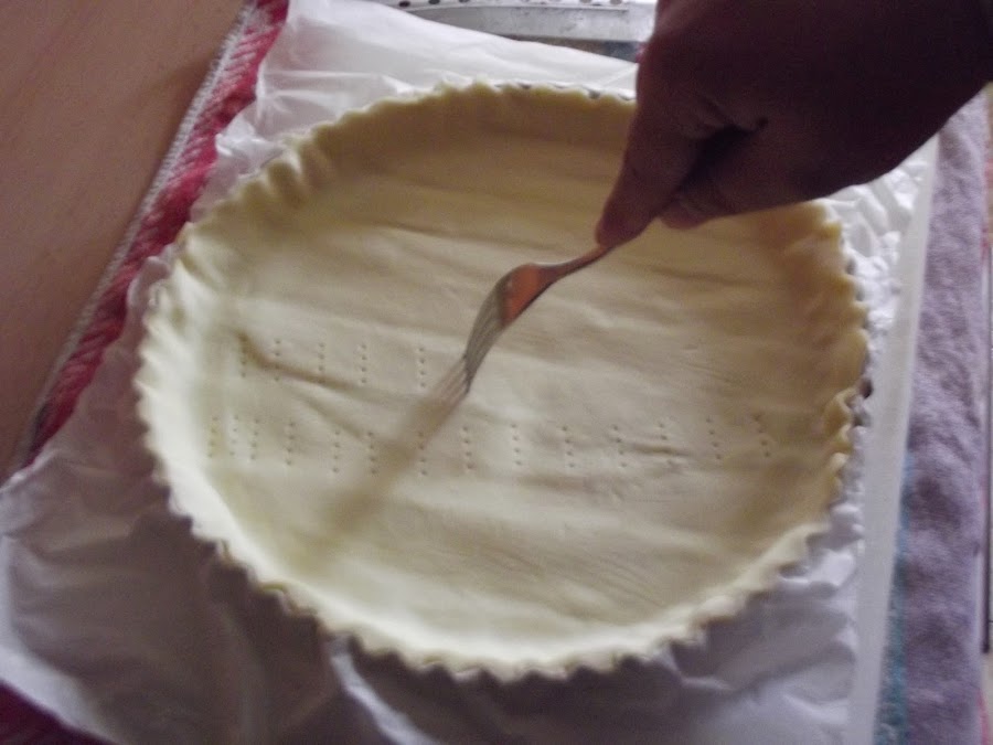 Con ayuda de un tenedor, pinchar la base para que no suba demasiado y reservar.