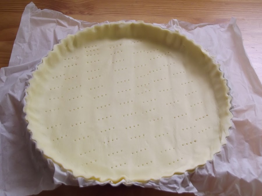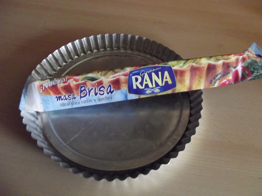 En un molde como el de la foto, colocar la pasta brisa (sin quitar el papel para que no se pegue), retirando el sobrante de masa de los bordes.