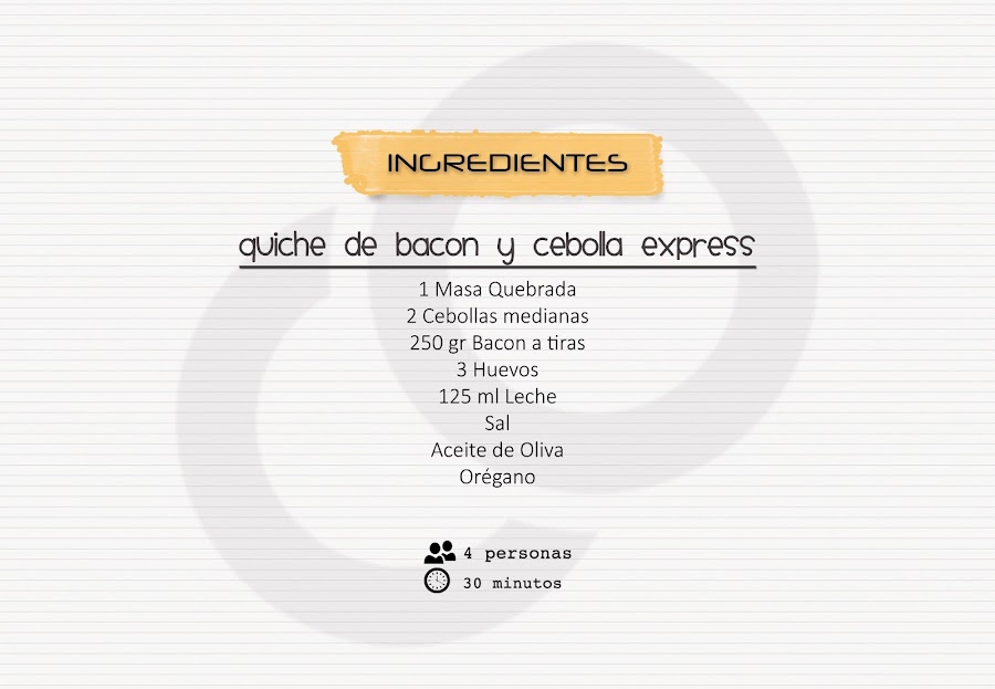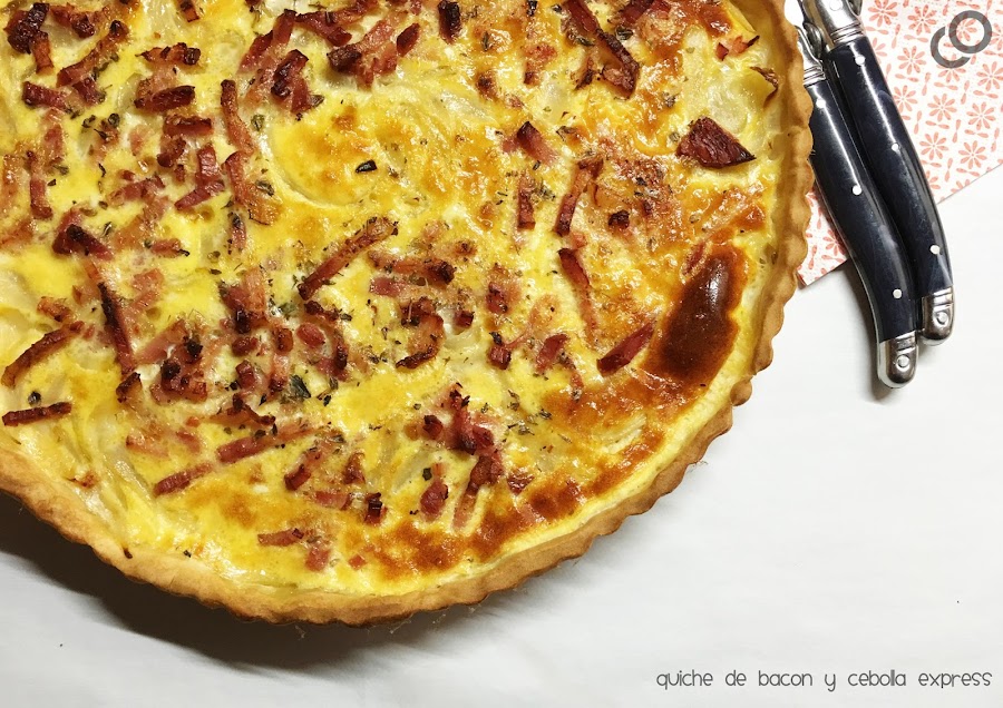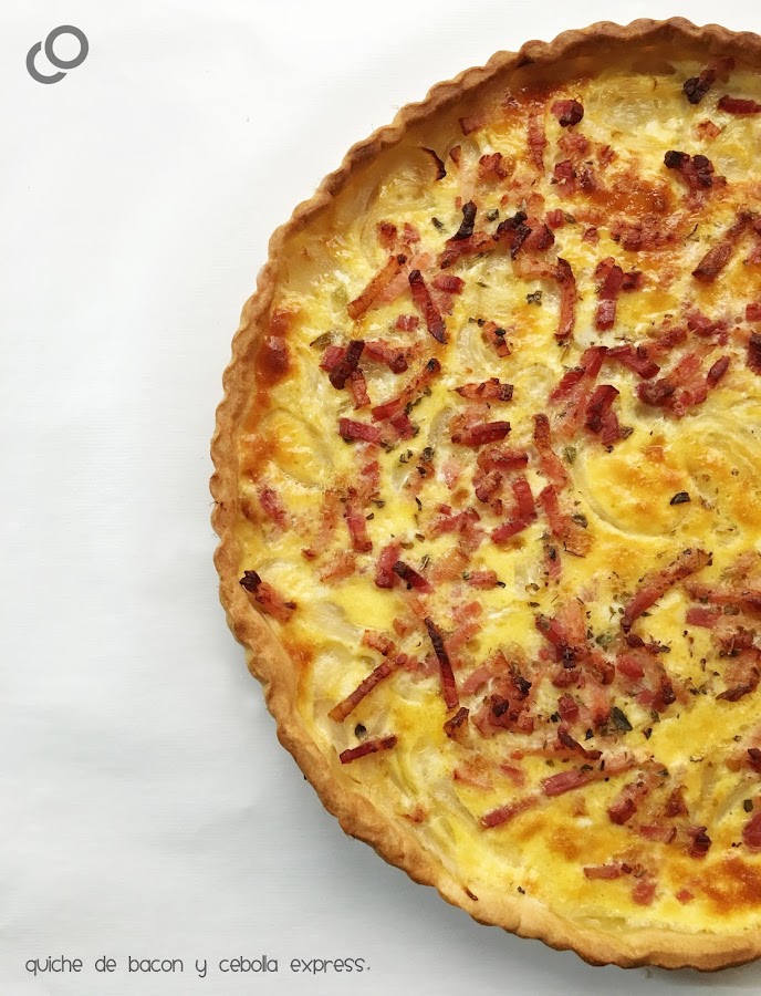 Esta quiché de bacon y cebolla es muy fácil de hacer porque vamos a usar una masa quebrada ya preparada (de las que venden en el super) y un bacon que ya viene troceado.