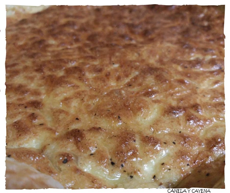 Esta vez la he preparado con bacon y queso roquefort, a la que he añadido un poco de queso emmental y sofrito de cebolla para que resultara más suave.