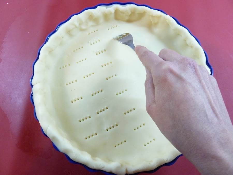 2) Colocar la masa sobre el molde en el que vamos a hornear y pinchar con un tenedor.