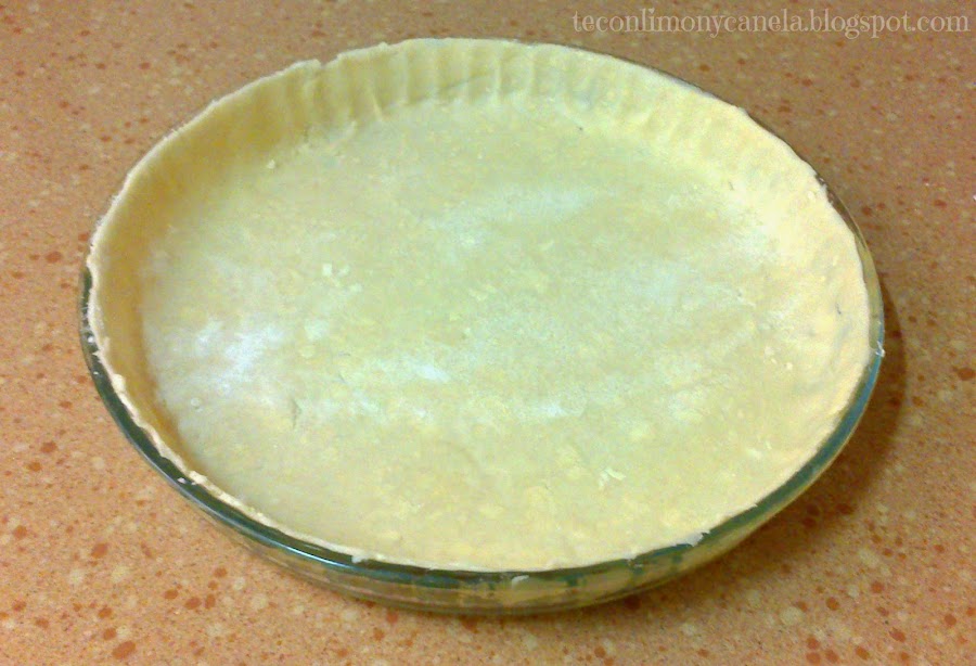 Mientras, extendemos la lámina de masa brisa y la ponemos en un molde previamente untado con un poco de aceite, para facilitar el desmoldado.