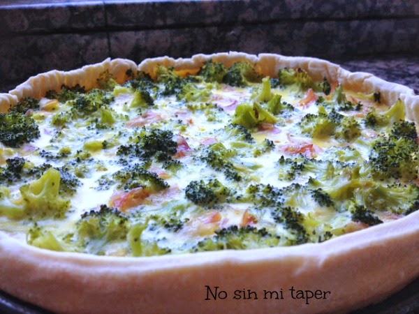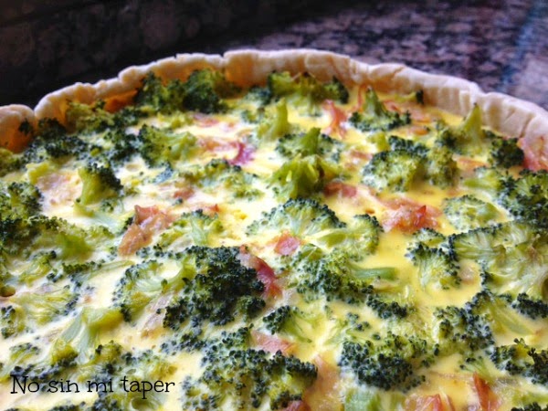 La quiche de hoy lleva un relleno muy simple y económico, brécol, jamón cocido y bacon. Se podría hacer solamente con bacon, pero yo pongo un poco de cada, porque aunque el bacon aporta mucho sabor, también aporta más grasa, así que de este modo nos compensa...