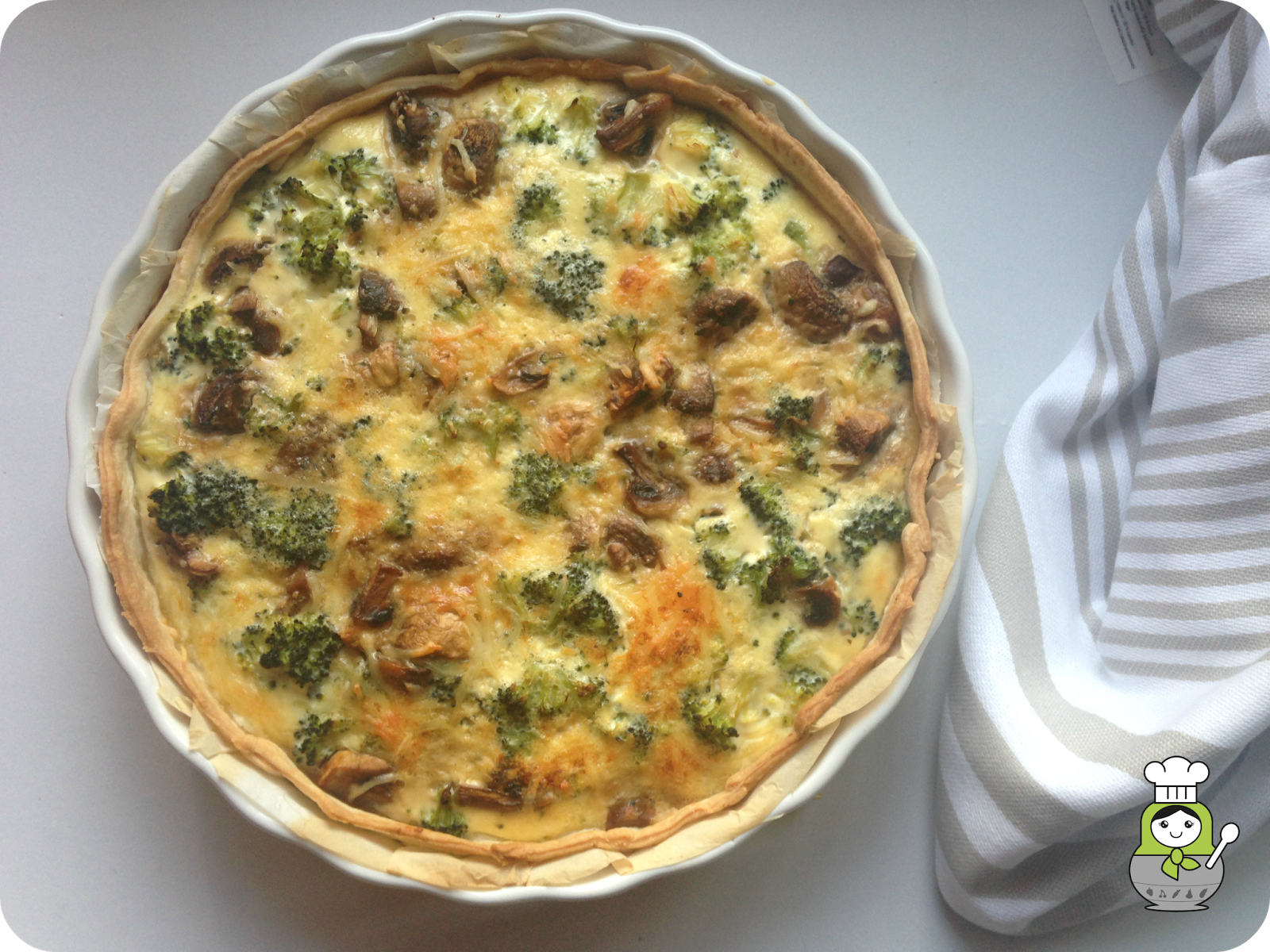 El verano no solo es tiempo de playa, también de pícnics y comidas en la montaña. Para esas ocasiones nada mejor que una tarta salada para compartir. Las quiches están riquísimas en cualquiera de sus versiones, pero esta de brócoli y champiñones es el complemento perfecto para carmes o como plato único.