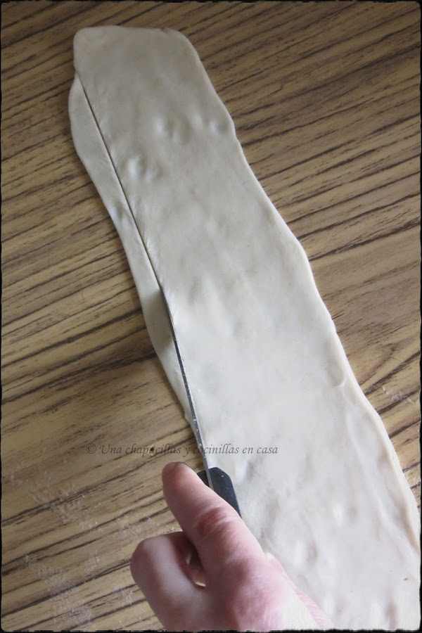 Recortar el hojaldre sobrante y reservarlo para después hacer unas tiras de adorno.