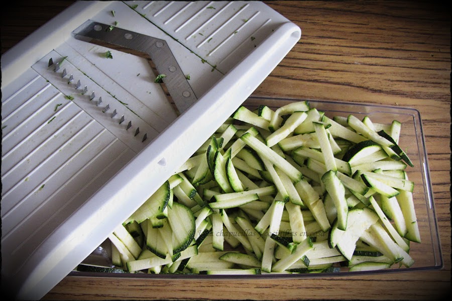 Lavar y trocear el calabacín, yo lo hice con ayuda de este cortador.