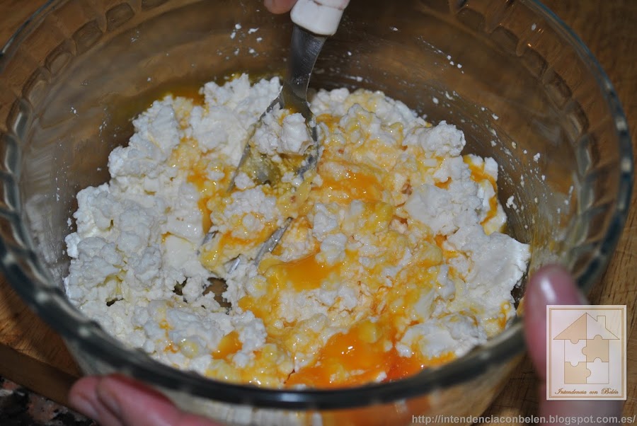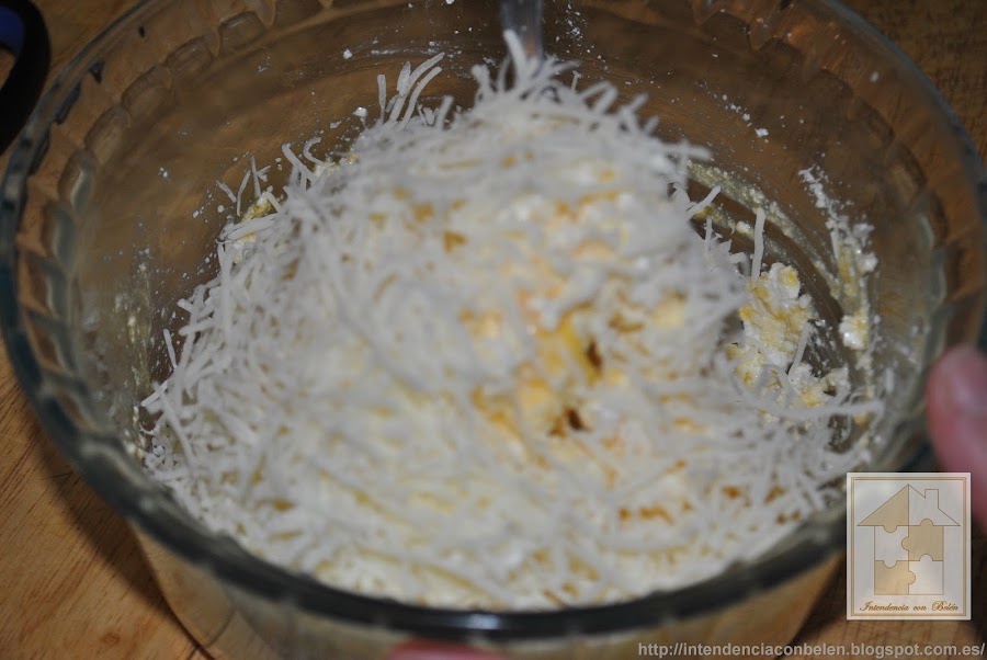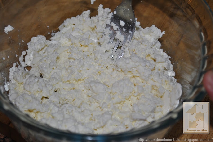 En primer lugar trituramos con un tenedor el queso en un bol.