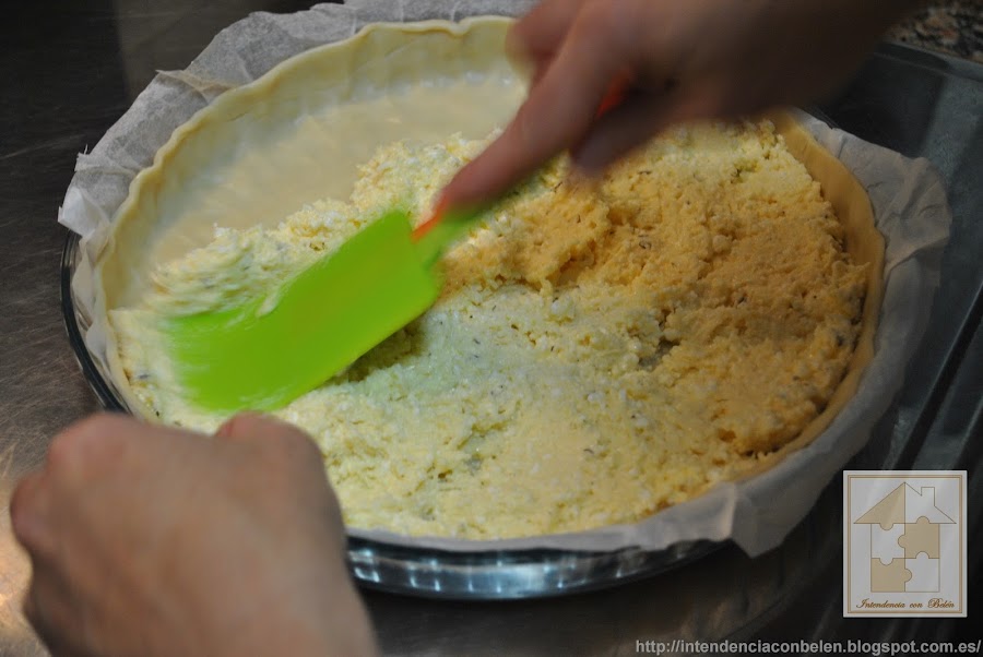 La acoplamos bien al molde y la pinchamos con un tenedor para que no nos suba al hornearla.