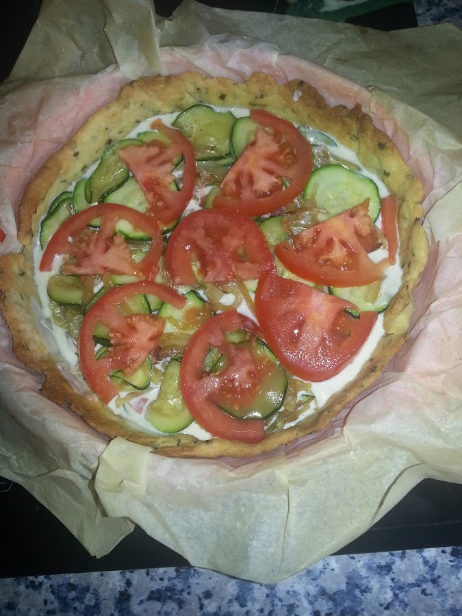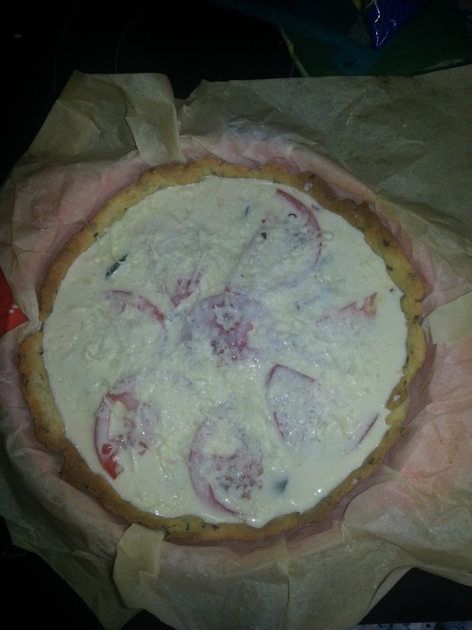 La pinchamos con un tenedor y la cubrimos con garbanzos para que no suba y se haga uniforme. La introducimos en le horno a 180º durante aproximadamente 15 minutos para que se vaya haciendo mientras que nosotros vamos haciendo el relleno.