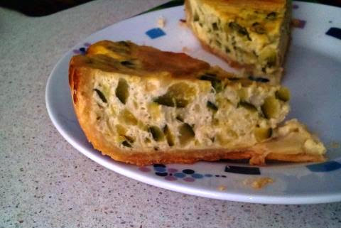 2. Mientras batimos los huevos con la nata (crema de leche), el queso, pimienta y la nuez moscada. Cuando este listo le añadimos el calabacín.