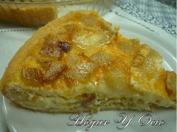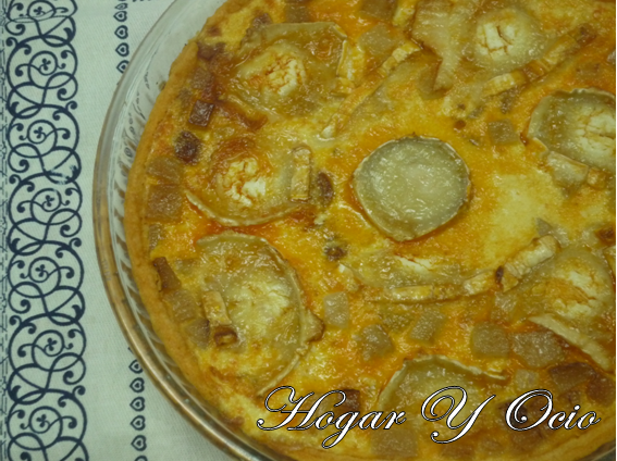 5. Cortamos el queso en rodajas y las colocamos en la superficie de la quiche.