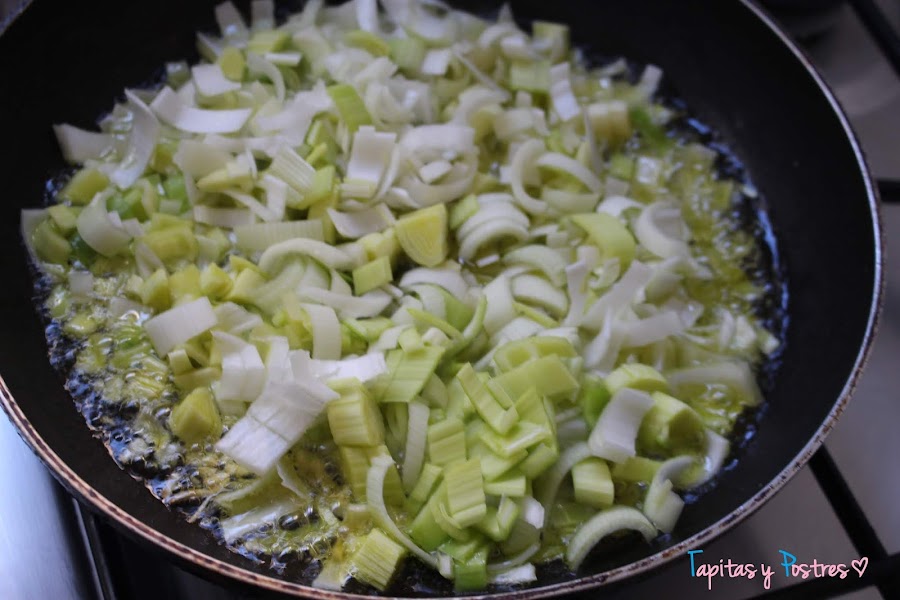Pochamos el puerro y el ajo. Lo reservamos aparte
