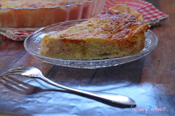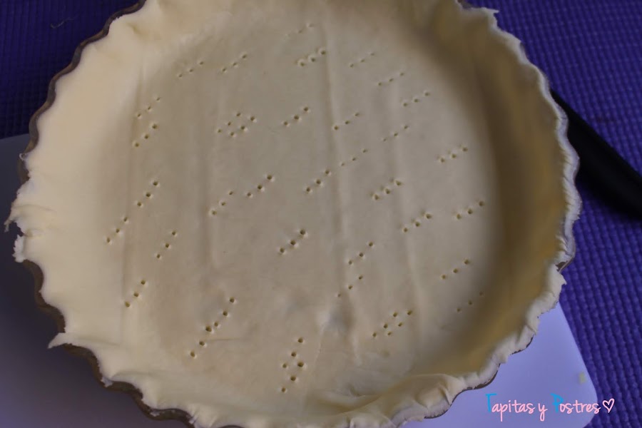 Colocamos la masa quebrada sobre un molde de quiche o tarta. Pinchamos el fondo