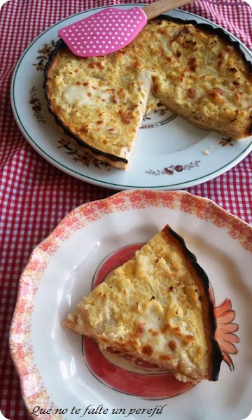 Para esta tarta he elegido la coliflor como ingrediente principal del relleno y en vez de nata (crema de leche), he optado por la leche evaporada, haciéndola más ligera y a la vez suaviza el sabor.