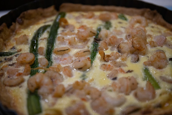 Yo me base en una receta que vi en la web webos fritos, quiche de espárragos, champiñones y gambas