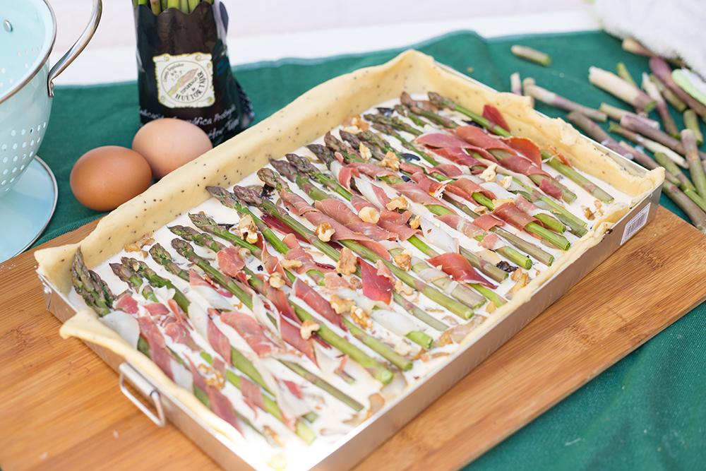 Quiche de espárragos, jamón y romero