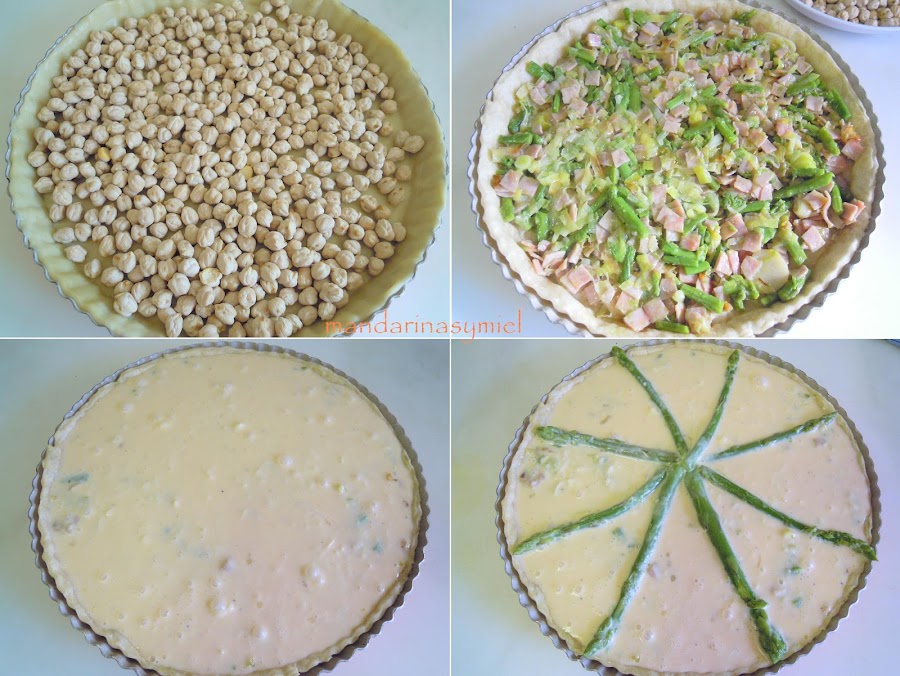 Extiende la masa y forra un molde de quiche previamente engrasado con mantequilla