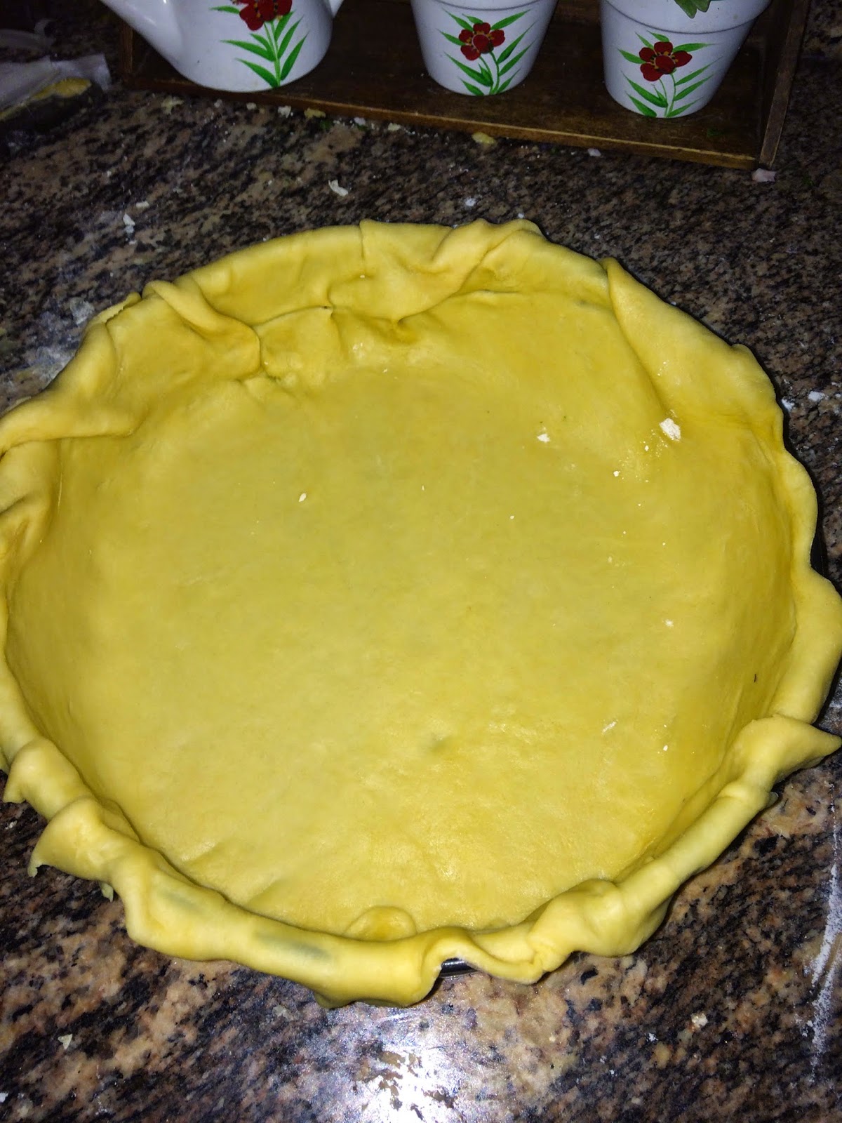 Forramos un molde desmontable con la masa quebrada, que previamente habremos untado con mantequilla, y ponemos toda la mezcla en el molde. Si sobra por los laterales, los doblamos hacia dentro, cubriendo la mezcla.