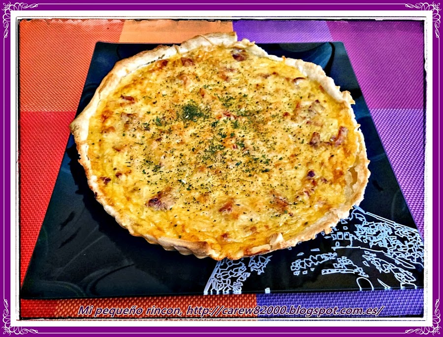 Batimos los huevos y añadimos lo cocinado y lo mezclamos todo muy bien para que se junten todos los ingredientes, una vez bien mezclados lo echamos a la masa y lo extendemos bien por todos los bordes, metemos el molde de nuevo en el horno y dejamos todo cocinar hasta que cuaje el huevo, lo sacamos del horno y podemos servir caliente o frio.