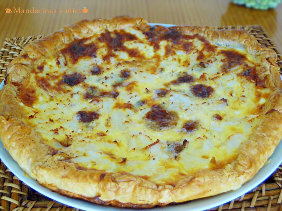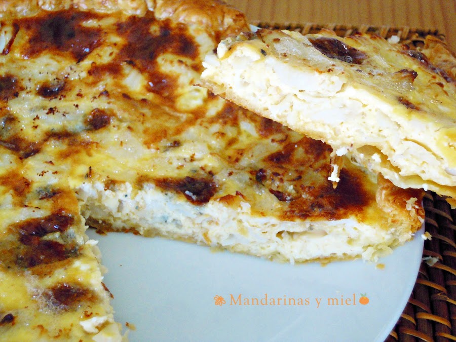 Con estos restos últimos, con merluza y con queso (en este caso queso azul), he hecho esta deliciosa quiche!!!