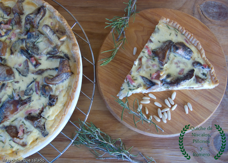 El níscalo o rovellón es un hongo que crece en pinares y bosques mixtos. Tiene una carne densa y compacta, con un olor suave y dulzón. La podemos preparar asada, guisada, como complemento en los guisos de carne.... Pero también en forma de tarta salada o de quiche.