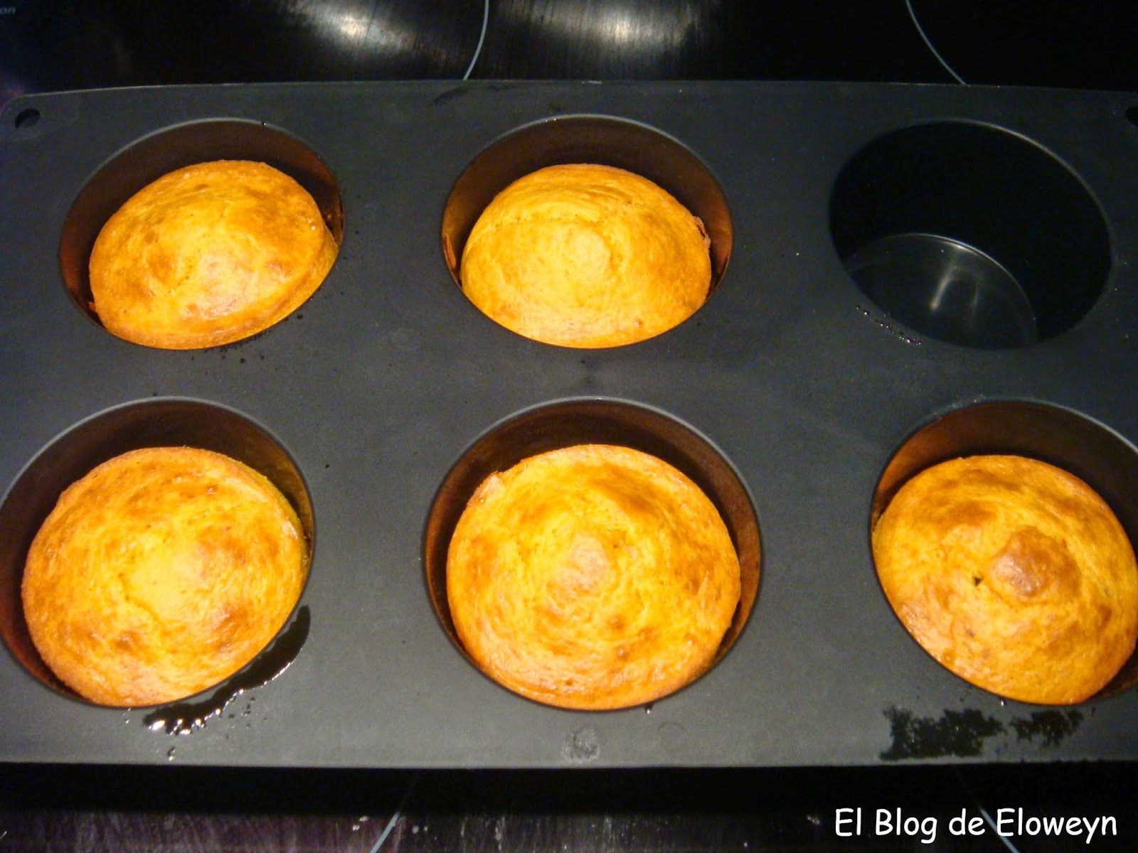 Puse la nueva mezcla en unos moldes para magdalenas y los metí al horno previamente calentado a 180º durante 25 minutos. Esto es lo que salió: