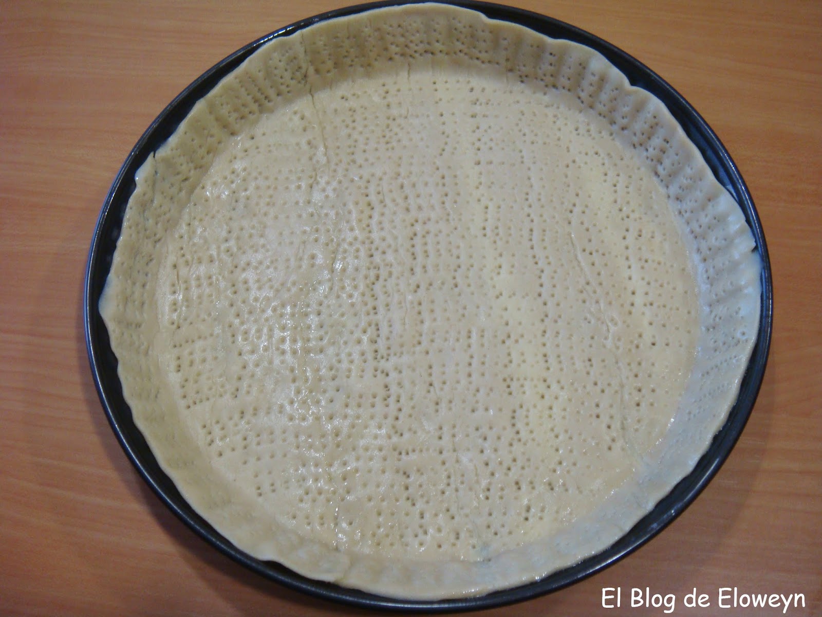 A continuación, pinchar con un tenedor toda la masa brisa. También los bordes.