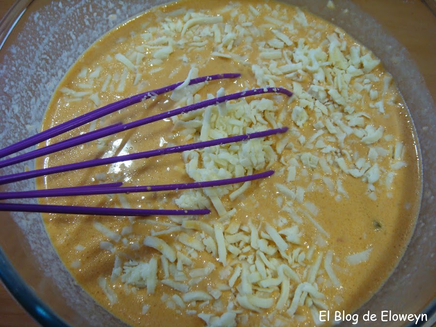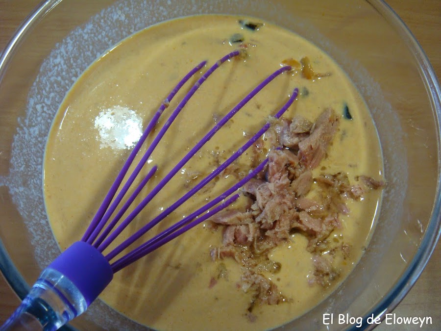 Como os dije antes, esto es lo que tienen los experimentos: Me sobró relleno, y como aquí no se tira nada, tenía que usarlo de alguna forma. ¿Y qué hice con el relleno? Unas magdalenas saladas que quedaron buenísimas. Añadí a la mezcla 40 gramos de harina para que tuviesen más consistencia y al desmoldar no se desmoronasen las magdalenas. También añadí medio sobre de levadura Royal.