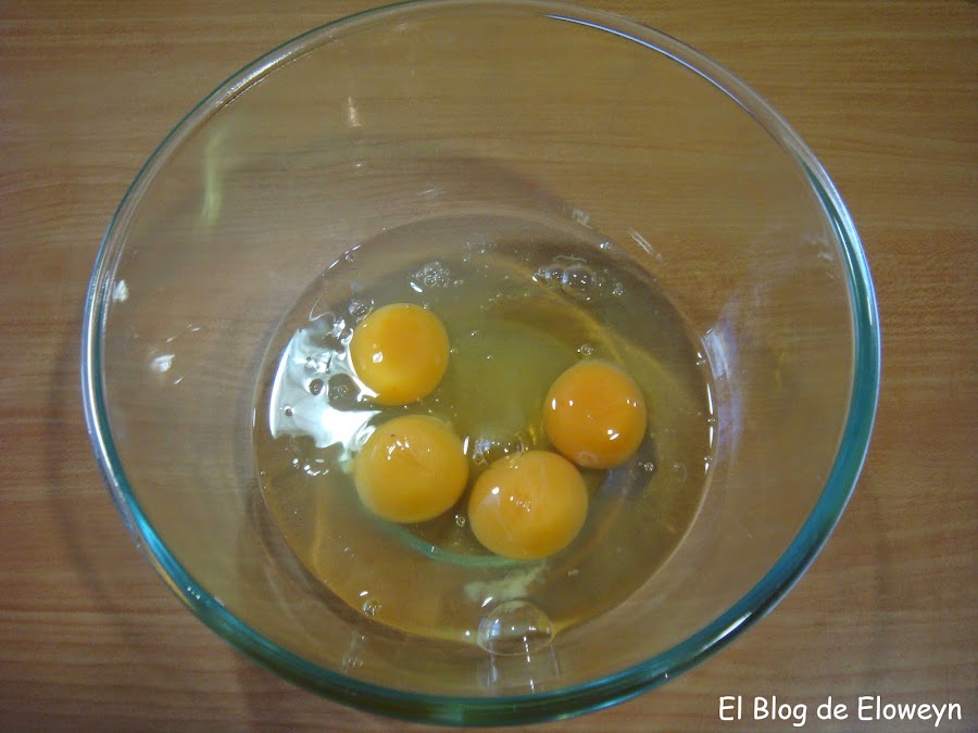 Poner en un bol los cuatro huevos.