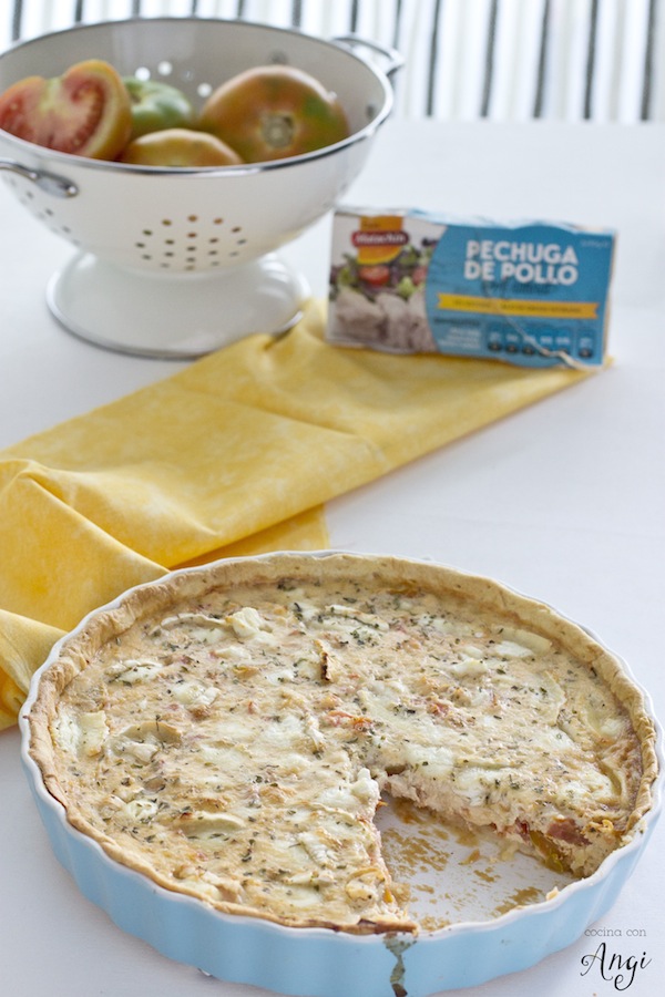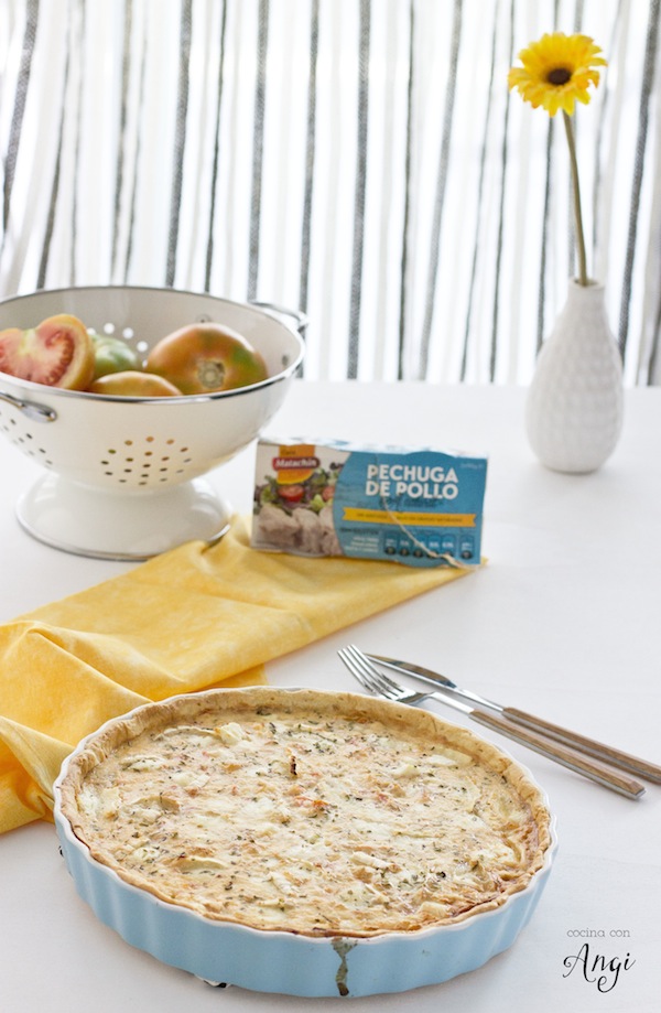 Las máquinas y demás aparatos de cocina están aquí para facilitarnos la vida y ayudarnos a gane algo de tiempo y es que cuando te acostumbras si se estropean cunde el pánico. Ayer justo se estropeó mi tostadora, así, sin más, sin avisar y casi me de algo a la hora del desayuno? al menos el horno sigue funcionando y pude hornear este delicioso quiché de pollo, tomate y queso que resulta fresco al paladar. Para la receta utilicé la pechuga de pollo al natural de Casa Matachín que venía en la última caja de Degustabox. Que me encanta recibir esta caja ya lo sabéis y la de este mes me encantó. La pechuga de pollo Casa Matachín que viene envasada al natural me ha encantado y se incorpora a mi cocina desde ya. Si vosotros también queréis recibir la caja Degustabox podéis utilizar este código promocional 3LD4G con el que el precio para la primera caja será de 9,99â?¬ en vez de 14,99â?¬ ¡vale la pena!