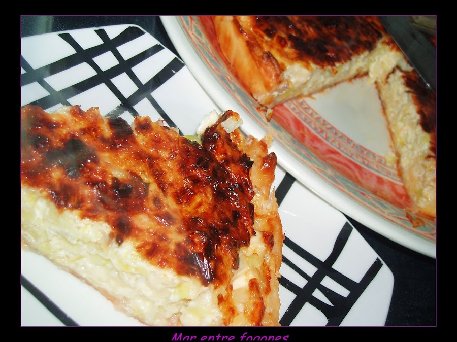 Yo como fue todo bastante rápido y esta semana andaba liadilla me decidí por una receta fácil pero no menos deliciosa y como el hojaldre y los dos ingredientes principales los tenía en casa me adjudiqué la recetilla. Me decidí por una quiché de puerro con queso de cabra. Eso si, he tuneado un poquillo la receta porque Darío la prepara con masa quebrada y en casa las quichés las preferimos con hojaldre.No le he puesto queso parmesano ni tomillo (no tenía en casa ), pero la esencia del puerro y queso de cabra estaba deliciosa.