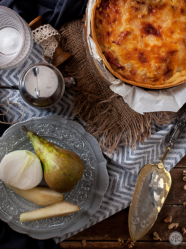 QUICHE DE QUESO GORGONZOLA, PERA, BACON Y NUECES Dificultad: Fácil