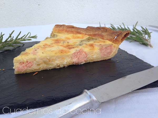 Yo usé alcachofas en conserva, pero si preferís hacerlo con alcachofas frescas no os olvidéis de pelarlas bien y cocerlas unos minutos antes de añadirlas a la quichê para que no queden duras.