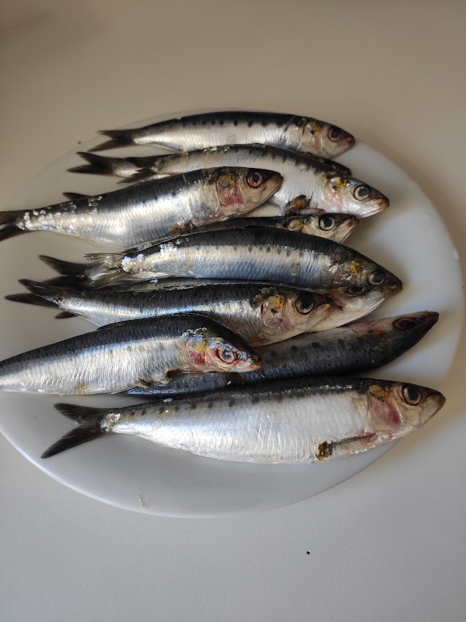 Limpiamos las sardinas, y sacamos sus lomos. Sazonamos.
