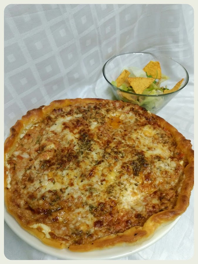 3.- Ponga en el vaso los ingredientes de la masa y mezcle 20 seg/vel 4. Retire la masa del vaso y forme una bola. Con un rodillo, extienda la masa fina y cubra con ella un molde de quiche. Selle bien la masa contra los borde apretandolos con los dedos mojados en agua y pinche con un tenedor toda la superficie de la masa. Lave el vaso.