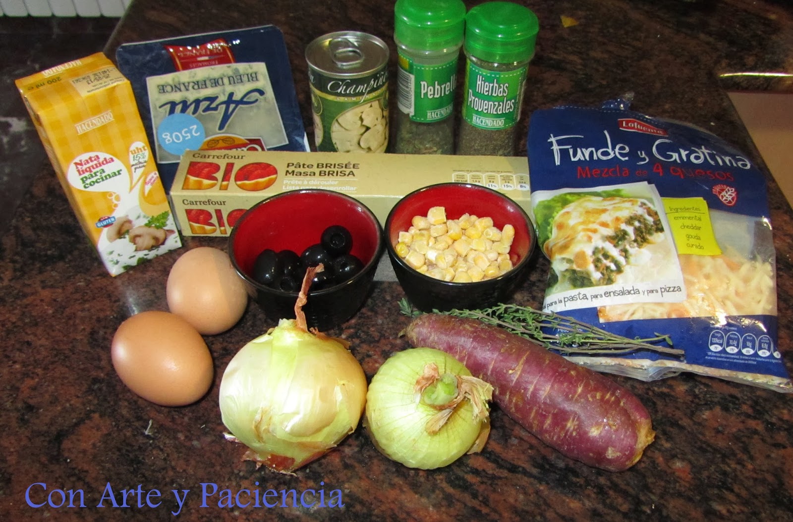 Cortamos y picamos las cebollas y zanahorias. En un bol batimos los huevos y agregamos todos los ingredientes. Vertemos en la masa y horneamos a 180º durante 30-40 minutos hasta comprobar que el relleno se haya cuajado comprobándolo con este truco. Se puede servir en caliente o en frío.