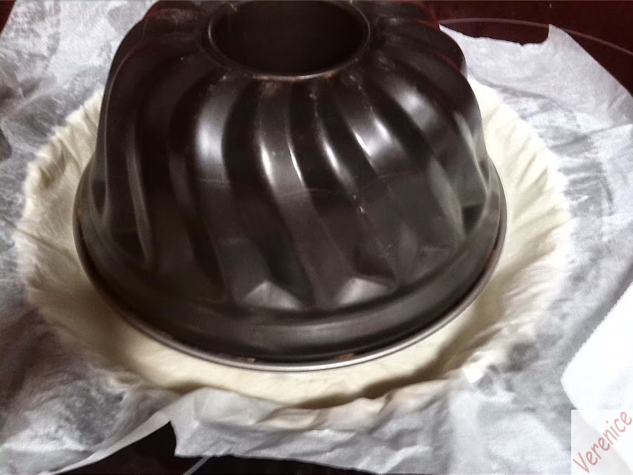Se pone un papel vegetal sobre la masa y sobre este un peso que puede ser legumbres o un molde válido para horno (ver foto)